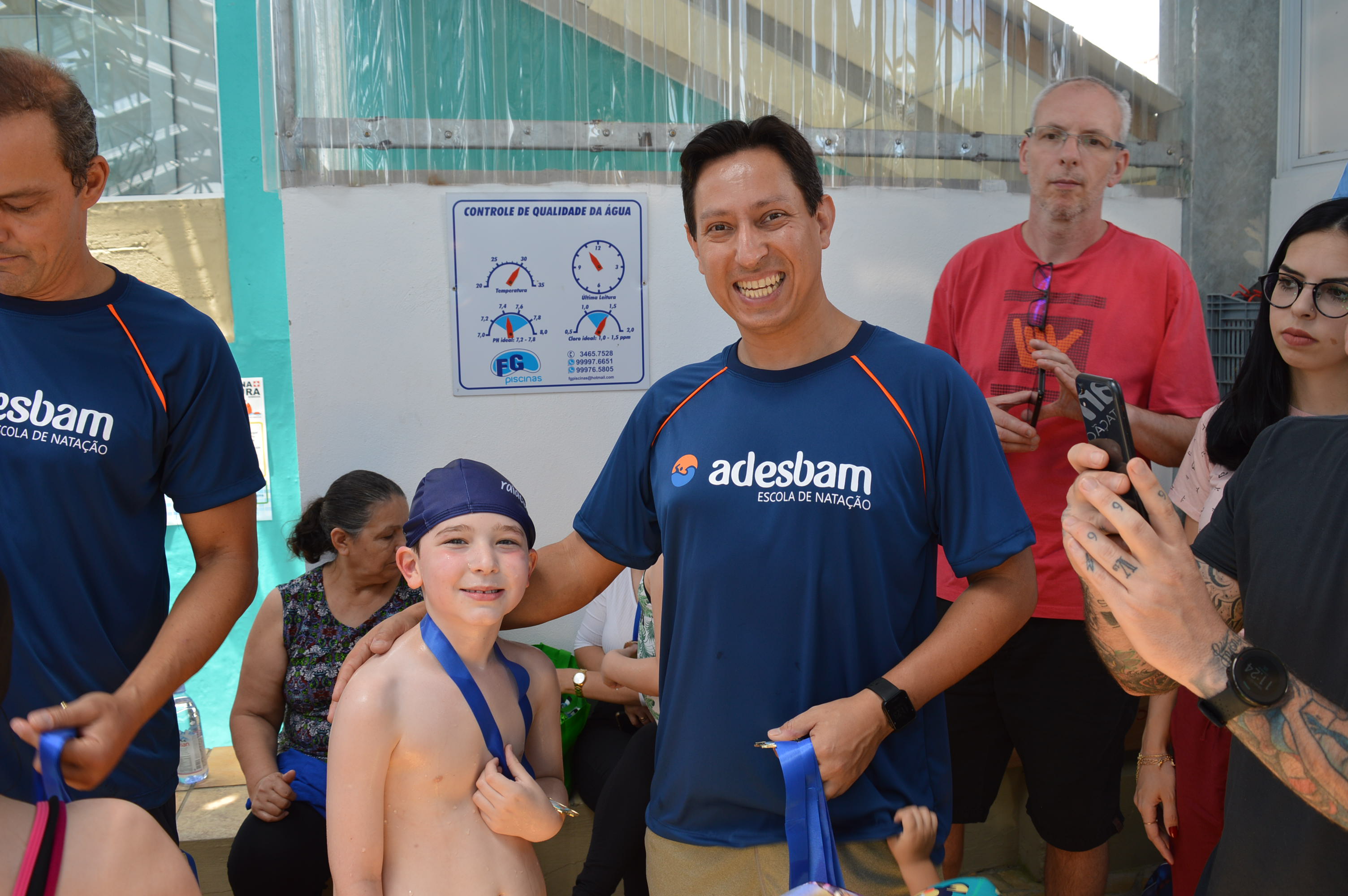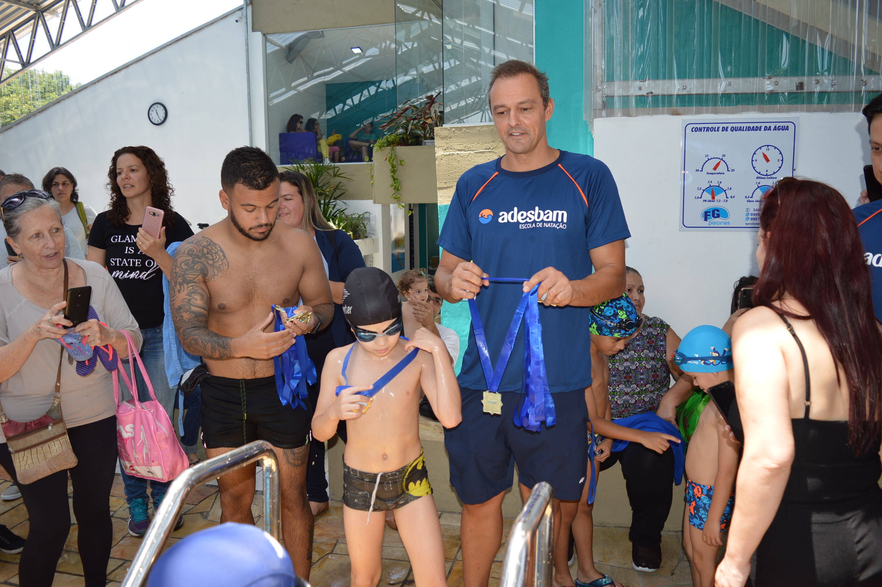 Na manhã de sábado, 23, tivemos o nosso 1º Festival de Natação Infantil. O evento, coordenado pelo professor Mario Freitas, teve demonstração de desempenho das crianças do Aprendizado, Iniciação, Adaptação e Bebê. Além disso, o nadador de medley, André Mombach, falou sobre a importância e conscientização da Segurança Aquática, pois novembro é o mês nacional da Segurança Aquática. As crianças aproveitaram muito e receberam premiações e medalhas. A escola de natação da Adesbam estava repleta de sorrisos, felicidade e amizade. Confira as imagens.